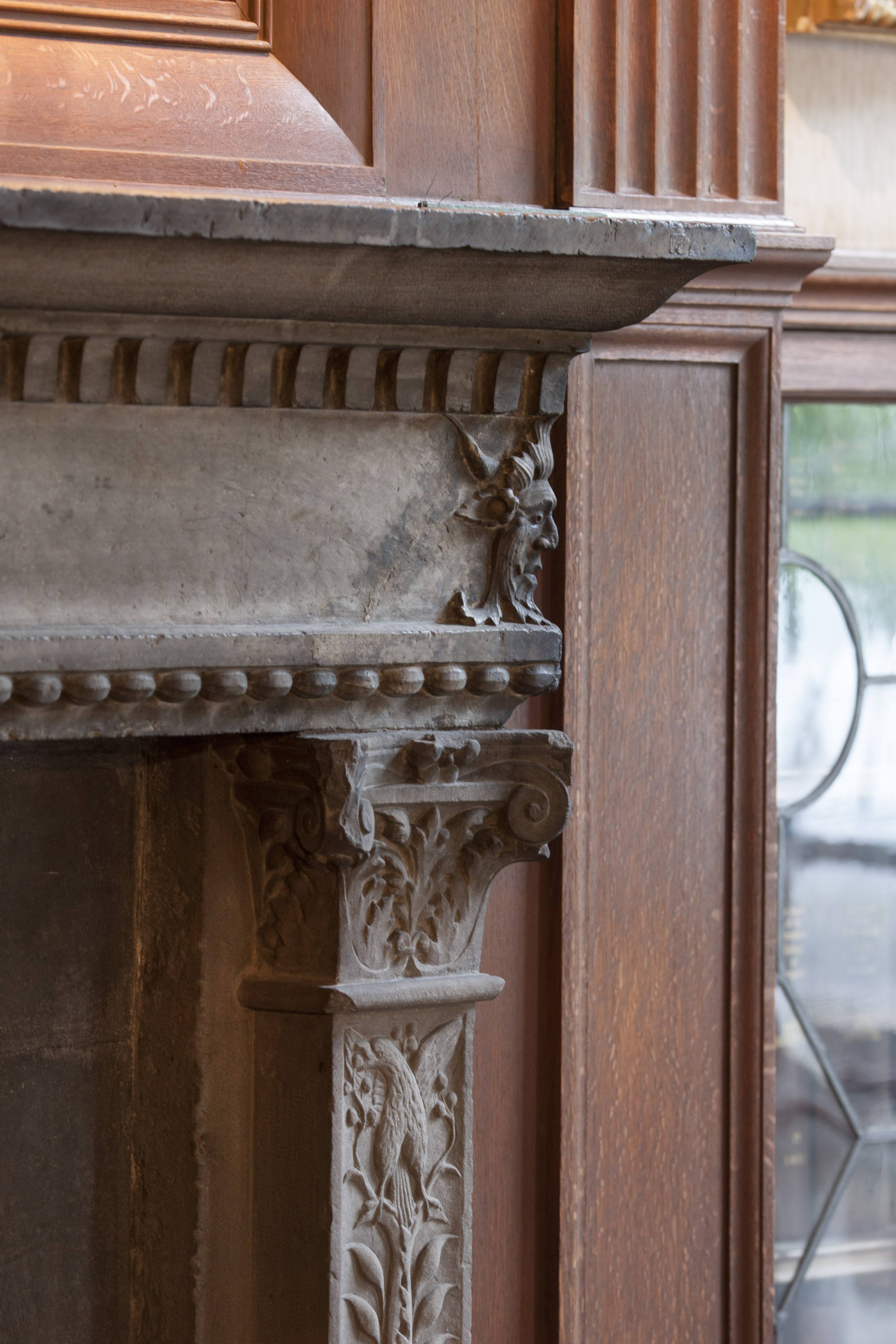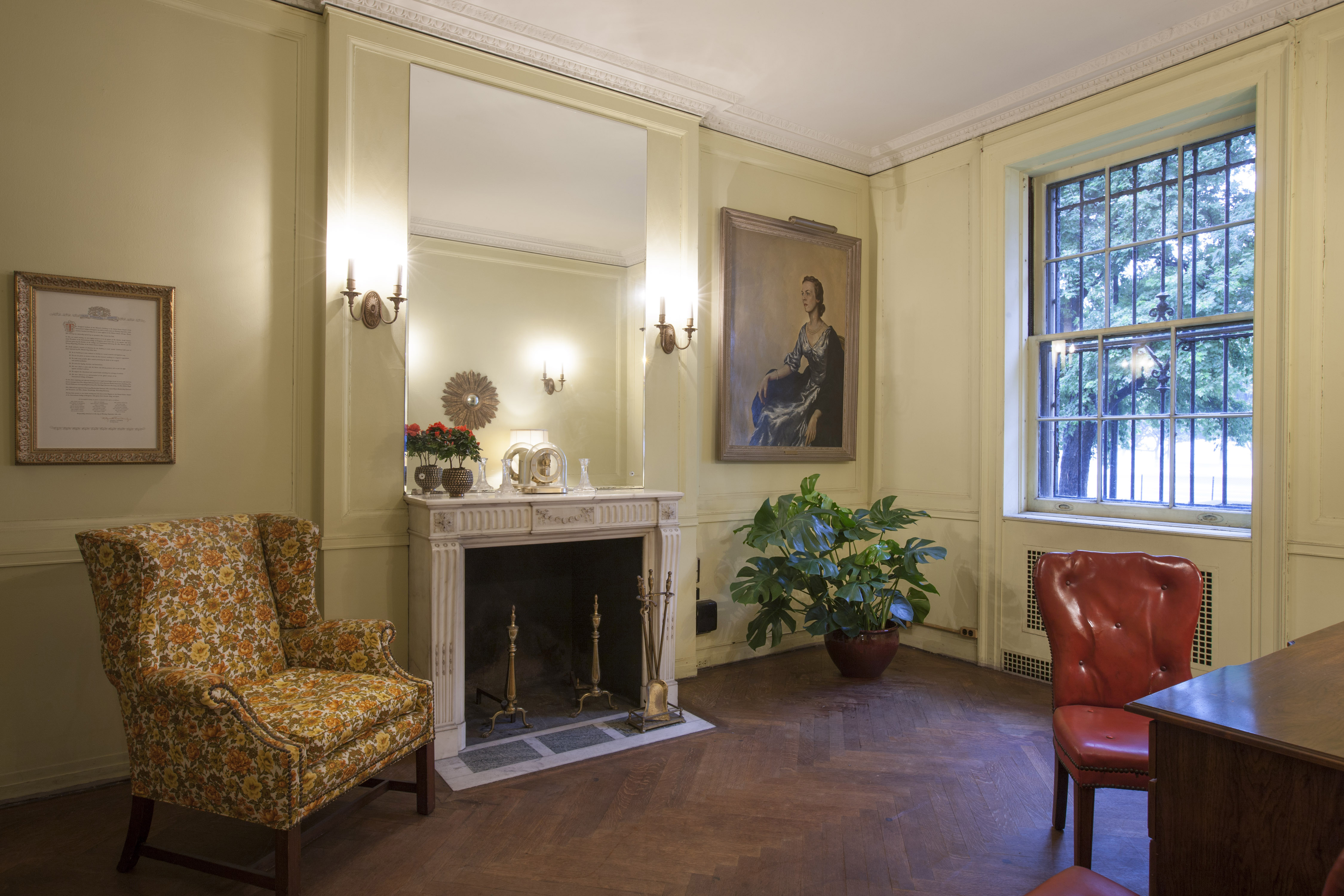 Take the elevator or ascend the curved marble staircase with stained glass windows up to the second level with soaring ceilings, impressive detail, and generous space. Adorned with intricate millwork and created with a level of craftsmanship and attention to detail no longer seen in modern construction, the second level provides unmatched living space. The formal living room has three floor-to-ceiling windows that fill the room with light. The magnificent, oversized, original marble fireplace is the centerpiece of this rich and inviting room with elegant details like marble archways, wood paneling, detailed moldings surrounding the room, and a molded medallion at the center of the ceiling.