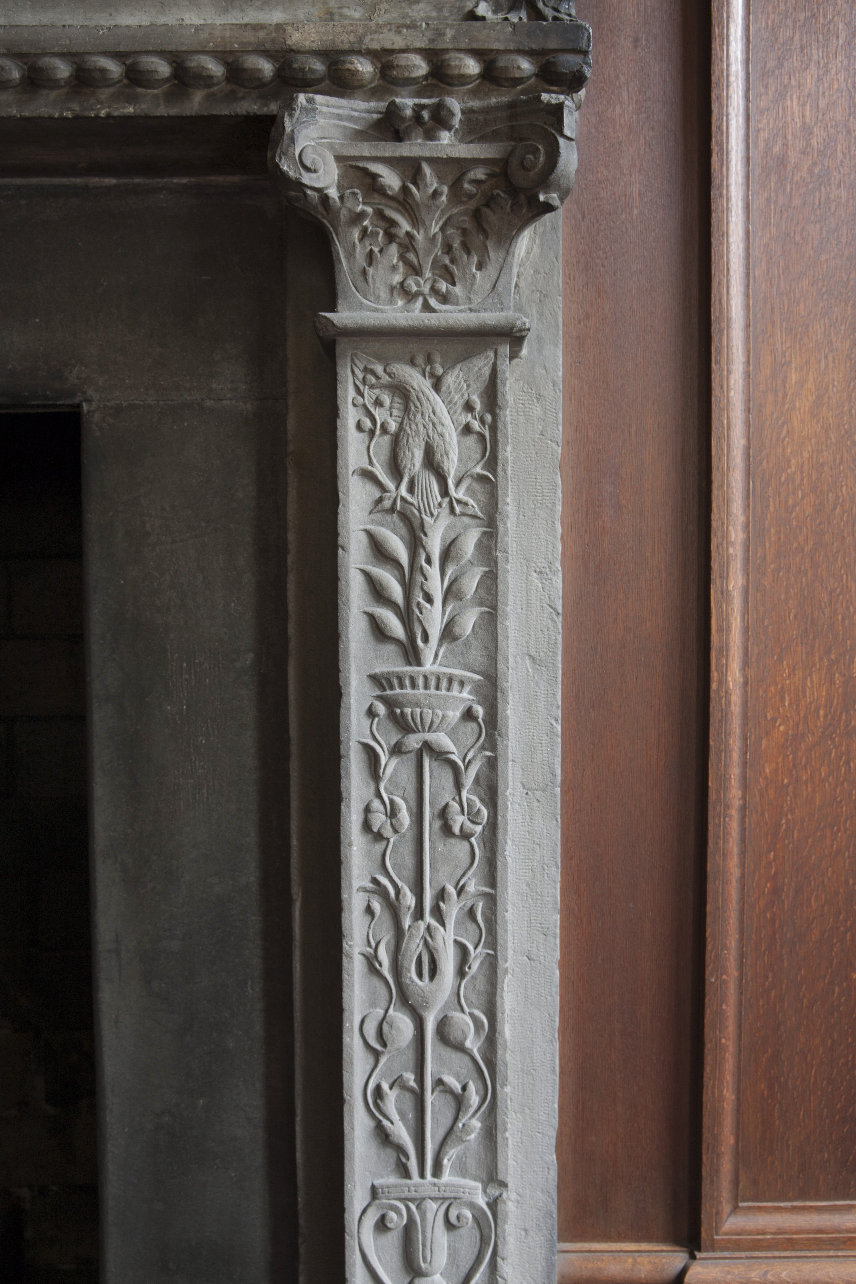 Continue into the formal dining room that can be enclosed by pocket doors. Walls of windows overlook Lake Shore Drive and beyond to the lake in this spacious, sophisticated dining room. Built-in bookshelves line the room anchored by an original fireplace with marble surround and impeccably detailed mantle, and hardwood paneling. An incredible plaster molded ceiling with geometric design sits above the herringbone laid hardwood floors in this inimitable dining space. Cross the living room to the family room with pocket doors. Rich paneled walls create a sophisticated space with hand-carved molding and original oversized marble fireplace in which to relax and entertain. The family room leads to a kitchen perfectly situated to make your own.